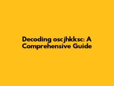 Decoding Oscjhkksc: A Comprehensive Guide