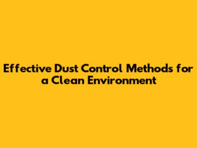 Effective Dust Control Methods For A Clean Environment