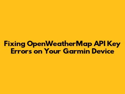 Fixing OpenWeatherMap API Key Errors On Your Garmin Device