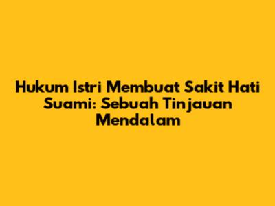 Hukum istri membuat sakit hati suami adalah topik yang kompleks, melibatkan aspek agama, budaya, dan psikologi. Dalam konteks ini, kita akan membahas secara mendalam mengenai apa saja yang bisa menyebabkan seorang suami merasa sakit hati, perspektif hukum Islam terhadap hal tersebut, serta bagaimana cara mengatasinya. Penting untuk diingat bahwa setiap hubungan memiliki dinamikanya sendiri, dan komunikasi yang baik adalah kunci untuk menjaga keharmonisan.