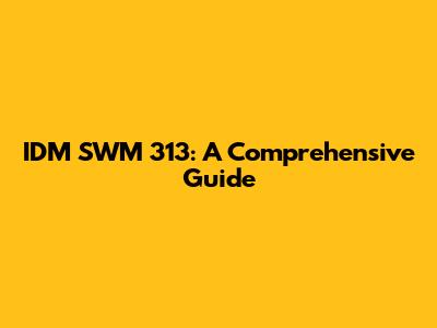 IDM SWM 313: A Comprehensive Guide