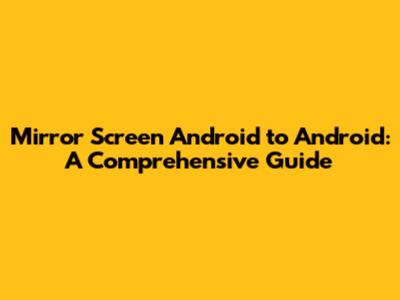Mirror Screen Android To Android: A Comprehensive Guide
