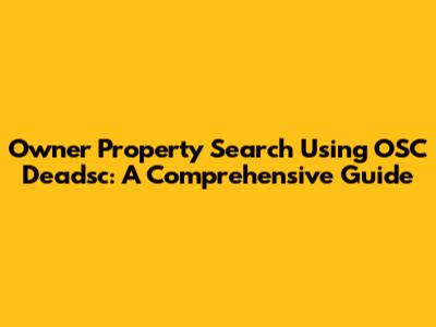 Owner Property Search Using OSC Deadsc: A Comprehensive Guide