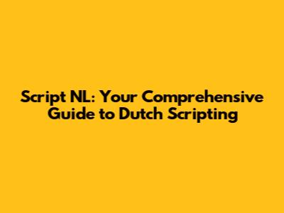 Script NL: Your Guide To Dutch Scripting
