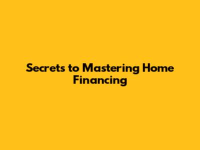 Secrets To Mastering Home Financing