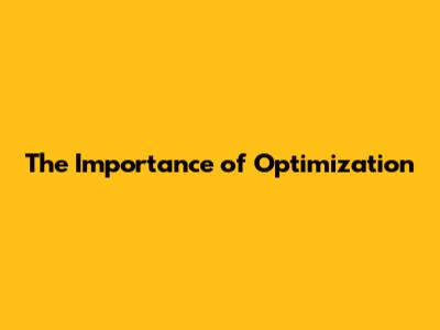 The Importance Of Optimization