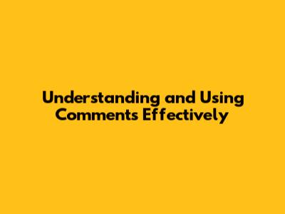 Understanding And Using Comments Effectively