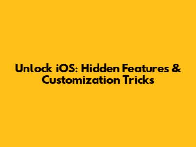 Unlock IOS: Hidden Features & Customization Tricks