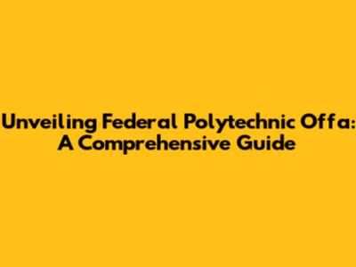 Unveiling Federal Polytechnic Offa: A Comprehensive Guide