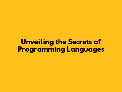 Unveiling The Secrets Of Programming Languages